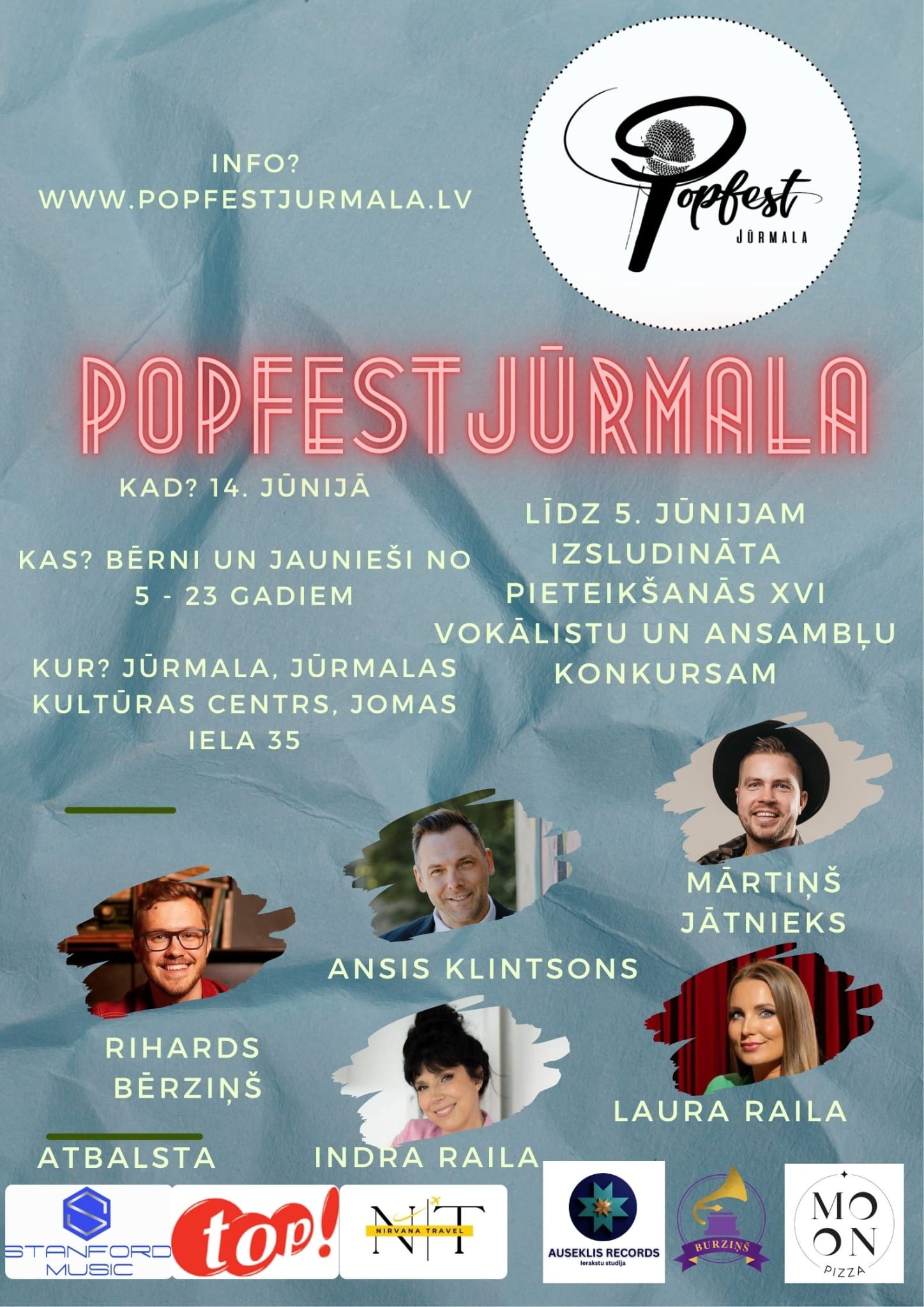 Izsludinam pieteikšanos jau 16. Vokālistu un ansambļu konkursam Popfestjūrmala, kurš norisināsies 15.jūnijā Jūrmalā.